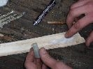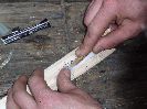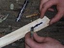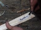 Насыпаем марганцовки и потом сахара, начинаем тереть срезом (около 45 градусов) твердой палочки.