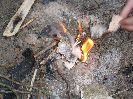 В итоге вата воспламеняется. Ложим ее на заранее подготовленную растопку и разжигаем костер.